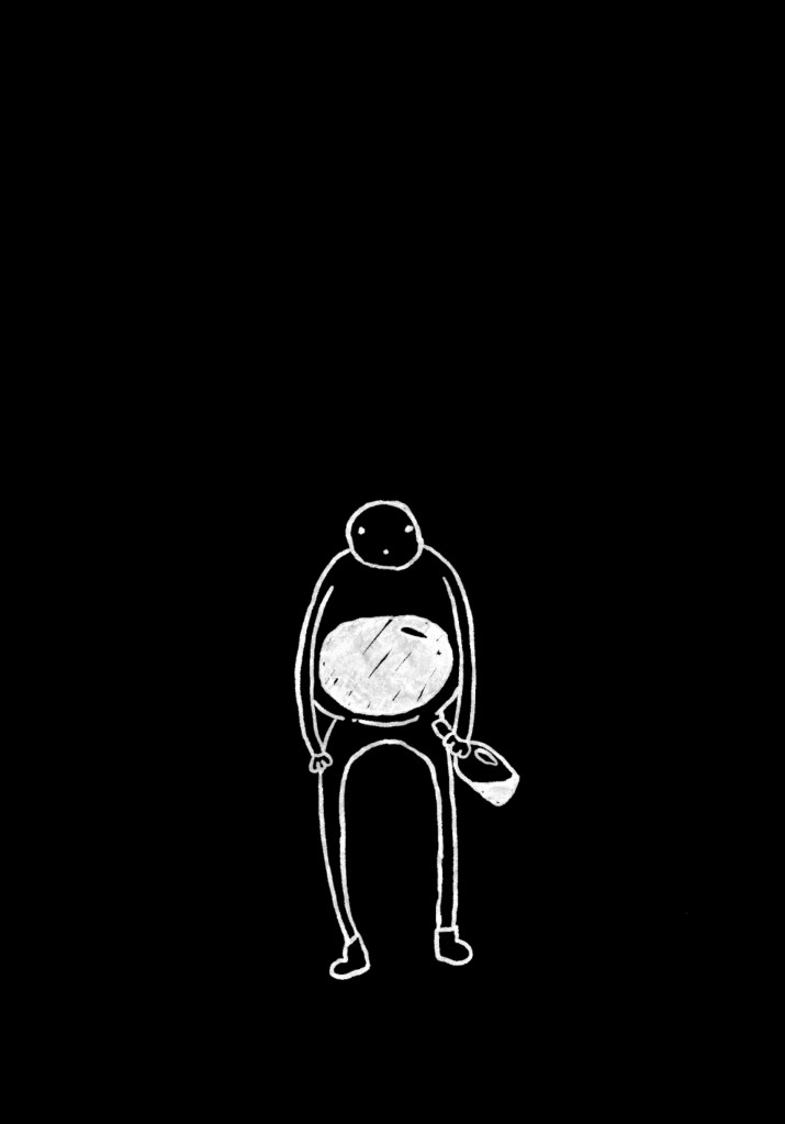 One time I felt her stir; or more of a flutter. She was still again for a time, and then I glanced down to find luminous eyes tracing the shaded contours of my face. The moonlight bounced off her and set her skin and the dirty clothes glowing softly; the face was calm. And like she was a child keeping a very wise secret, she closed her eyes again, and let the rhythm of my walking rock her back to sleep.